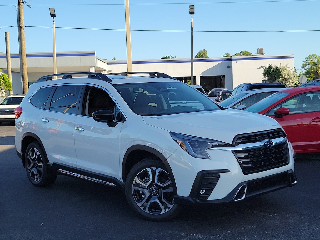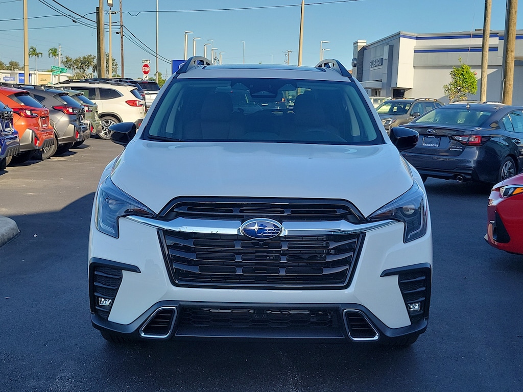 THIS VEHICLE INCLUDES THE FOLLOWING FEATURES AND OPTIONS: 14 Speakers, 20" Dk Gray Alloy w/Machine Finish Wheels, 3rd row seats: bench, 4-Wheel Disc Brakes, ABS brakes, Air Conditioning, Alloy Wheels, AM/FM radio: SiriusXM with 360L, Apple CarPlay & Android Auto, Auto High-beam Headlights, Auto-dimming Rear-View mirror, Automatic temperature control, Brake assist, Bumpers: body-color, Compass, Delay-off headlights, Driver door bin, Driver vanity mirror, Dual front impact airbags, Dual front side impact airbags, Electronic Stability Control, Emergency communication system: MySubaru Safety (3-year free trial), Exterior Parking Camera Rear, Four wheel independent suspension, Front anti-roll bar, Front Bucket Seats, Front Center Armrest, Front dual zone A/C, Front fog lights, Front reading lights, Fully automatic headlights, Garage door transmitter: HomeLink, harman/kardon® Speakers, Heated & Ventilated Front Bucket Seats, Heated door mirrors, Heated front seats, Heated rear seats, Heated steering wheel, HVAC memory, Illuminated entry, Knee airbag, Leather Shift Knob, Leather steering wheel, Low tire pressure warning, Memory seat, Navigation System, Occupant sensing airbag, Outside temperature display, Overhead airbag, Overhead console, Panic alarm, Passenger door bin, Passenger vanity mirror, Perforated Nappa Leather-Trimmed Upholstery, Power door mirrors, Power driver seat, Power Liftgate, Power moonroof, Power passenger seat, Power steering, Power windows, Radio data system, Radio: Subaru 11.6" Multimedia System w/Navigation, Rain sensing wipers, Rear air conditioning, Rear anti-roll bar, Rear reading lights, Rear window defroster, Rear window wiper, Reclining 3rd row seat, Remote keyless entry, Security system, Speed control, Speed-sensing steering, Split folding rear seat, Spoiler, Steering wheel mounted audio controls, Tachometer, Telescoping steering wheel, Tilt steering wheel, Traction control, Trip computer, Turn signal indicator mirrors, Variably intermittent wipers, and Ventilated front seats.