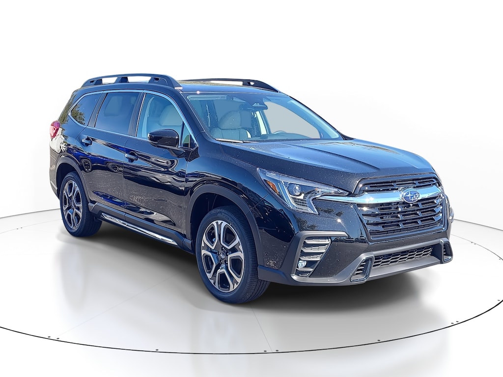 THIS VEHICLE INCLUDES THE FOLLOWING FEATURES AND OPTIONS: Standard Model, 14 Speakers, 3rd row seats: bench, 4-Wheel Disc Brakes, ABS brakes, Air Conditioning, Alloy Wheels, AM/FM radio: SiriusXM with 360L, Apple CarPlay & Android Auto, Auto High-beam Headlights, Auto-Dimming Exterior Mirror with Approach Light, Auto-dimming Rear-View mirror, Automatic temperature control, Brake assist, Bumpers: body-color, Compass, Delay-off headlights, Driver door bin, Driver vanity mirror, Dual front impact airbags, Dual front side impact airbags, Electronic Stability Control, Emergency communication system: MySubaru Companion (5-years free), Exterior Parking Camera Rear, Four wheel independent suspension, Front anti-roll bar, Front Bucket Seats, Front Center Armrest, Front Door Projector Lights, Front dual zone A/C, Front fog lights, Front reading lights, Fully automatic headlights, Garage door transmitter: HomeLink, harman/kardon® Speakers, Heated door mirrors, Heated Front Bucket Seats, Heated front seats, Heated rear seats, Heated steering wheel, Illuminated Cargo Sill, Illuminated entry, Knee airbag, Leather Shift Knob, Leather steering wheel, LED Cargo Area Lighting, LED Upgrade, Low tire pressure warning, Memory seat, Navigation system: MySubaru Navigator (1-year trial), Occupant sensing airbag, Outside temperature display, Overhead airbag, Overhead console, Panic alarm, Passenger door bin, Passenger vanity mirror, Perforated Leather-Trimmed Upholstery, Power door mirrors, Power driver seat, Power Liftgate, Power moonroof, Power passenger seat, Power steering, Power windows, Radio data system, Radio: Subaru 11.6" Multimedia System with Navigation, Rear air conditioning, Rear anti-roll bar, Rear Door Projector Lights, Rear reading lights, Rear seat center armrest, Rear window defroster, Rear window wiper, Reclining 3rd row seat, Remote keyless entry, Security system, Side Sill Plates, Speed control, Speed-sensing steering, Split folding rear seat, Spoiler, Steering wheel mounted audio controls, Tachometer, Telescoping steering wheel, Tilt steering wheel, Traction control, Trip computer, Turn signal indicator mirrors, Variably intermittent wipers, Wheels: 20" x 7.5 J Dark Gray Alloy with Machine Finish, and Wireless Charger.
