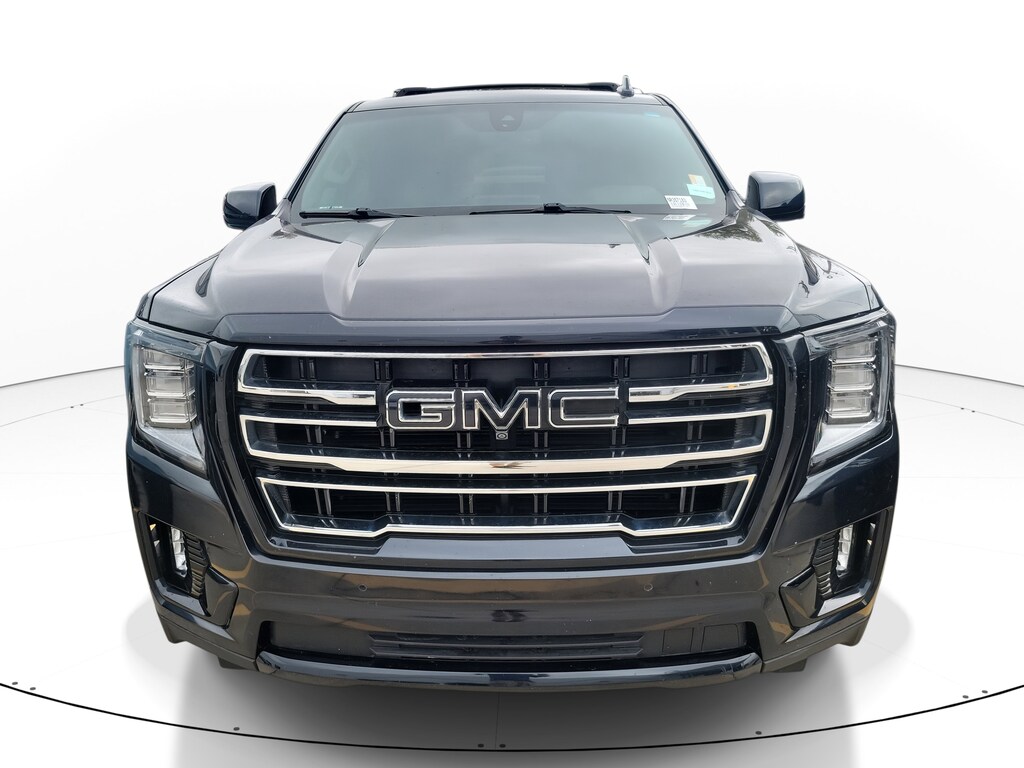 THIS VEHICLE INCLUDES THE FOLLOWING FEATURES AND OPTIONS: License Plate Front Mounting Package, Preferred Equipment Group 4SA (2 Presets For Power Driver Seat, Automatic Stop/Start, Bose 9-Speaker Stereo Audio System Feature, Bright Chrome Bodyside Moldings, Bright Front & Rear Door Sill Plates, Chrome Door Handles w/Body-Color Strip, Hands-Free Power Programmable Rear Liftgate, Heated & Ventilated Driver & Front Passenger Seats, Heated Driver & Front Passenger Seats, Inside Rear-View Auto-Dimming Mirror, Safety Alert Seat, Start/Stop System Disable Button, Universal Home Remote, and Wireless Charging), SLT Luxury Package (2 Presets For Outside Rearview Mirrors, 3rd Row 60/40 Power-Folding Split-Bench Seat, HD Surround Vision, Heated 2nd Row Outboard Position Seats, Heated Steering Wheel, Outside Heated Power-Adjustable Mirrors, Power Release 2nd Row 60/40 Split-Folding Bench Seat, Power Tilt & Telescopic Steering Column, and Rear Pedestrian Alert), SLT Premium Package (Dual-Pane Panoramic Power Sunroof), 4WD, 3 Years of OnStar & Connected Services Plan, 3.23 Rear Axle Ratio, 3rd row seats: split-bench, 4-Wheel Disc Brakes, 9 Speakers, ABS brakes, Air Conditioning, Alloy wheels, AM/FM radio: SiriusXM with 360L, AM/FM Stereo, Apple CarPlay/Android Auto, Auto High-beam Headlights, Auto-dimming Rear-View mirror, Automatic Emergency Braking, Automatic temperature control, Bodyside moldings, Brake assist, Bumpers: body-color, Compass, Delay-off headlights, Driver door bin, Driver vanity mirror, Dual front impact airbags, Dual front side impact airbags, Electronic Stability Control, Emergency communication system: OnStar and GMC Connected Services capable, Following Distance Indicator, Forward Collision Alert, Four wheel independent suspension, Front & Rear Park Assist, Front anti-roll bar, Front Bucket Seats, Front Center Armrest, Front dual zone A/C, Front fog lights, Front Pedestrian Braking, Front reading lights, Fully automatic headlights, Garage door transmitter, Heated door mirrors, Heated front seats, Illuminated entry, IntelliBeam Automatic High Beam On/Off, Lane Change Alert w/Side Blind Zone Alert, Lane Keep Assist w/Lane Departure Warning, Leather steering wheel, Low tire pressure warning, Memory seat, Navigation System, Not Equip w/Ventilated Seat Cushion Blower Motor, Not Equipped w/4-Way Driver & Fr Pass Pwr Lumbar, Not Equipped w/Front & Rear Park Assist, Not Equipped w/Steering Column Lock, Occupant sensing airbag, Outside temperature display, Overhead airbag, Overhead console, Panic alarm, Passenger door bin, Passenger vanity mirror, Perforated Leather-Appointed Seating, Polished Exhaust Tip, Power door mirrors, Power driver seat, Power Liftgate, Power passenger seat, Power Release 2nd Row Bucket Seats, Power steering, Power windows, Premium Smooth Ride Suspension, Rain sensing wipers, Rear air conditioning, Rear anti-roll bar, Rear Cross Traffic Alert, Rear reading lights, Rear seat center armrest, Rear window defroster, Rear window wiper, Remote keyless entry, Roof rack: rails only, Security system, SiriusXM w/360L, Speed control, Speed-sensing steering, Split folding rear seat, Spoiler, Steering wheel mounted audio controls, Tachometer, Telescoping steering wheel, Tilt steering wheel, Traction control, Trip computer, Variably intermittent wipers, Ventilated front seats, Voltmeter, Wheels: 20" x 9" 6-Spoke Polished Aluminum, Wheels: 22" Black w/Selective Machining (LPO), and Wheels: 22" x 9" Steel Interim (LPO).
